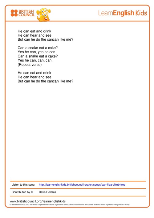 Version nouvelle de la chanson can a flea trouvée sur british council learning kids avec une réochestration un vrai son une présentation karaoke pour fa. A flea is the very small insect that you can see in the song. Repeat verse he can eat and drink he can hear and see but can he do the cancan like me. Escucha esta canción graciosa.