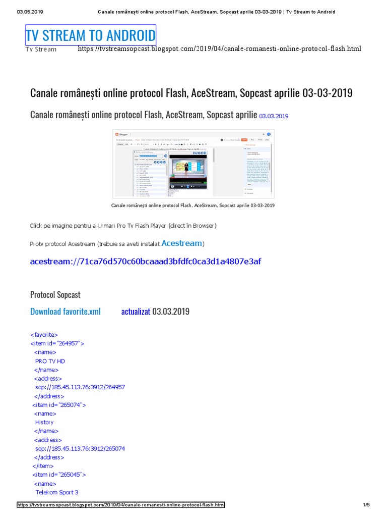 Canale Romanești Online Protocol Flash Acestream Sopcast 2019