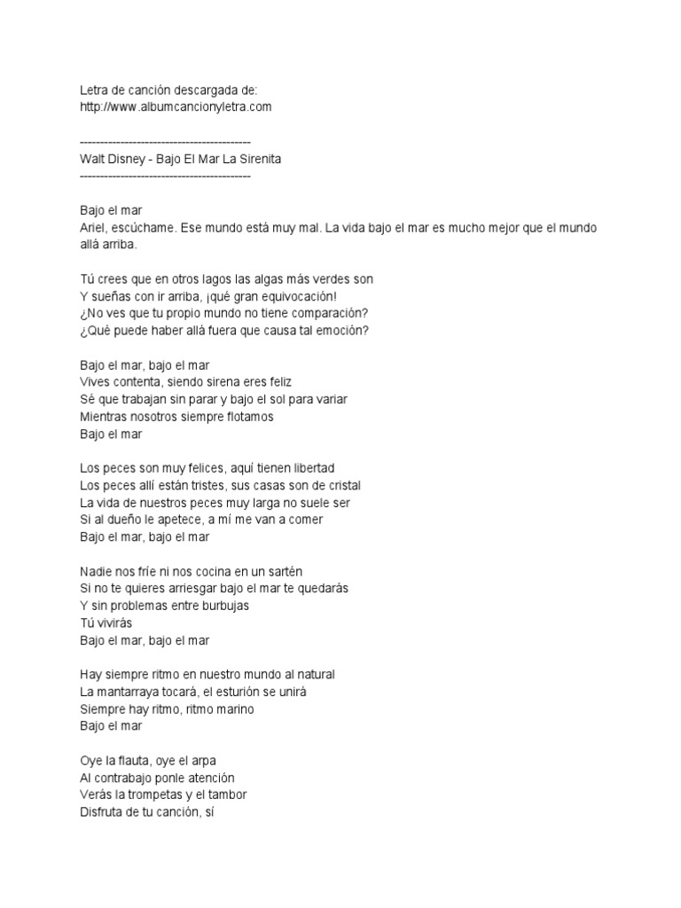 Letras De Canciones Disney La Sirenita Bajo El Mar Wattpad