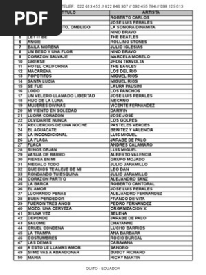 Listado De Canciones Xls Musica En Espanol Musicos Prueba