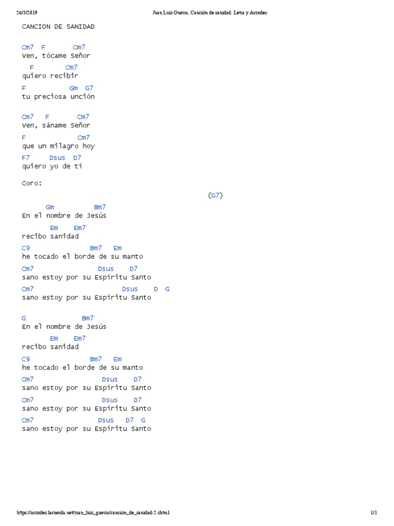 Cancion De Sanidad Juan Luis Guerra Acordes