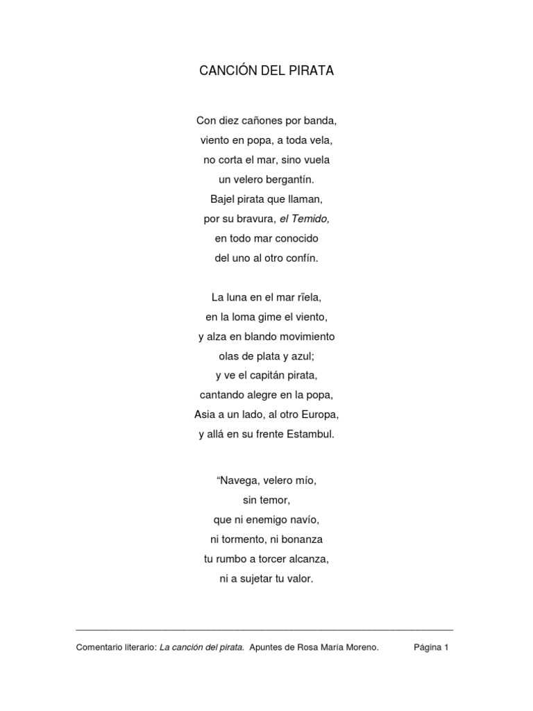 Comentario Literario De La Cancion Del Pirata Metro Poesia