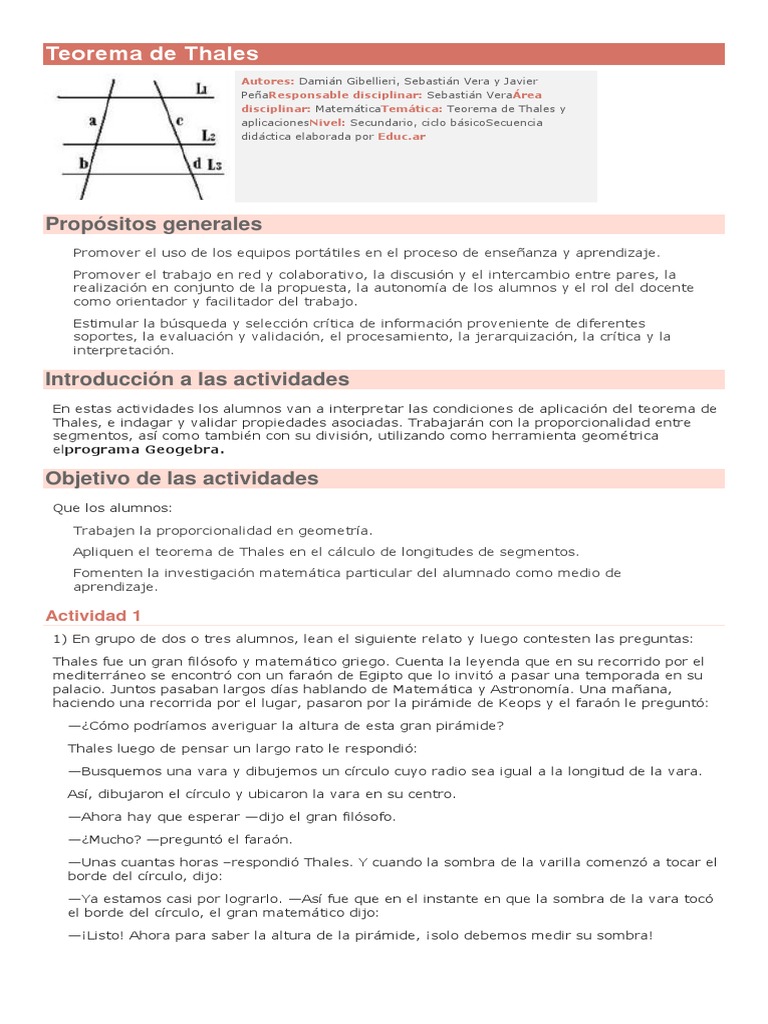 Secuencia Didactica De Teorema De Thales Docx Triangulo Geometria