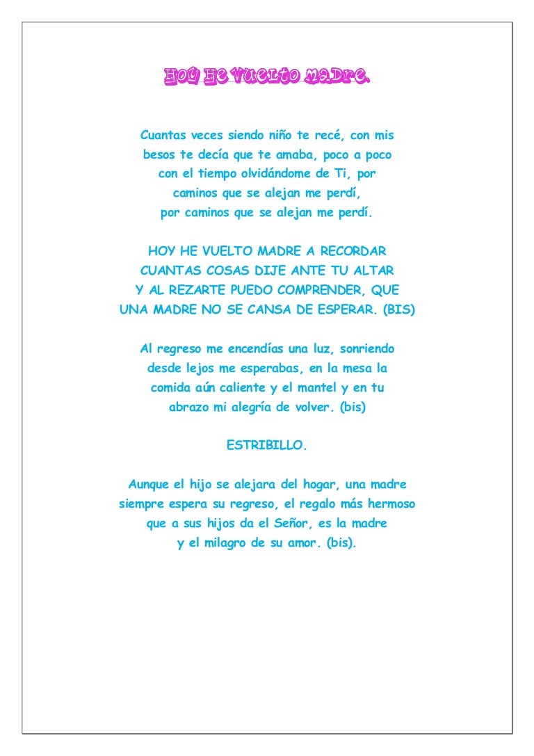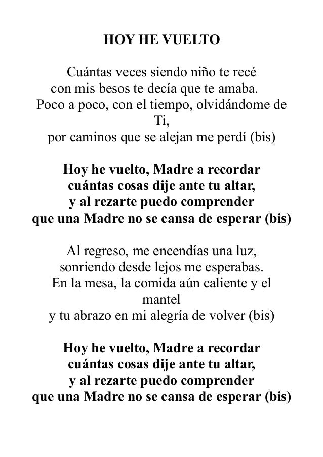 Letra De La Cancion Hoy He Vuelto Madre Coro Cantare