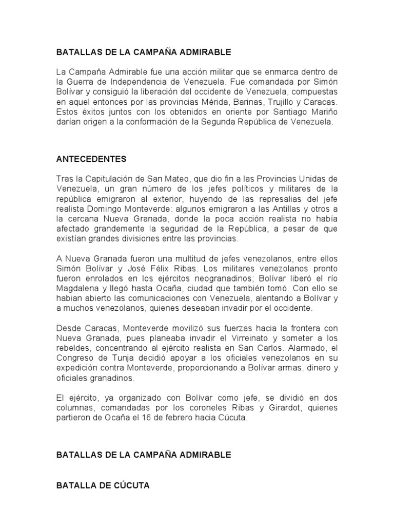 Batallas De La Campana Admirable Operaciones Militares