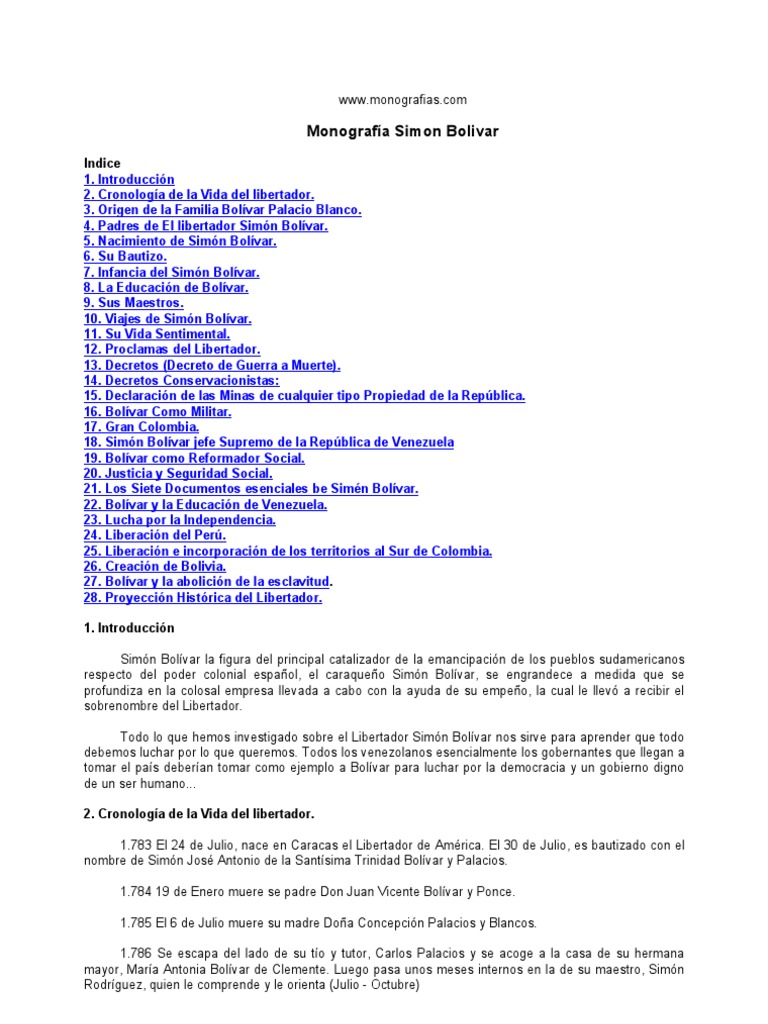Biografia De Simon Bolivar
